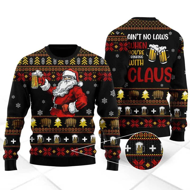 Funny Drinking With Claus Ugly Christmas Sweater For Men Women