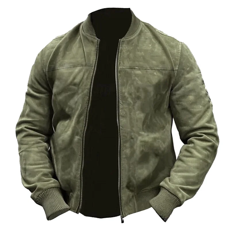 Men's Vintage Outdoor Suede Solid Color Zipper Long Sleeve Jacket