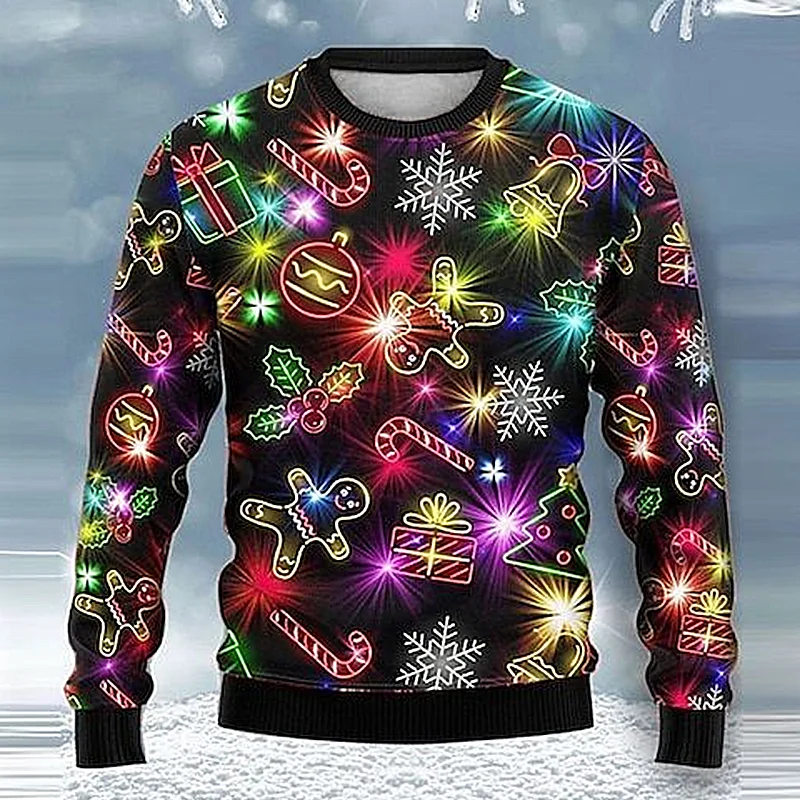 Snowflake Gingerbread Lights Rock Men's Knitting Print Ugly Christmas Pullover Sweatshirt