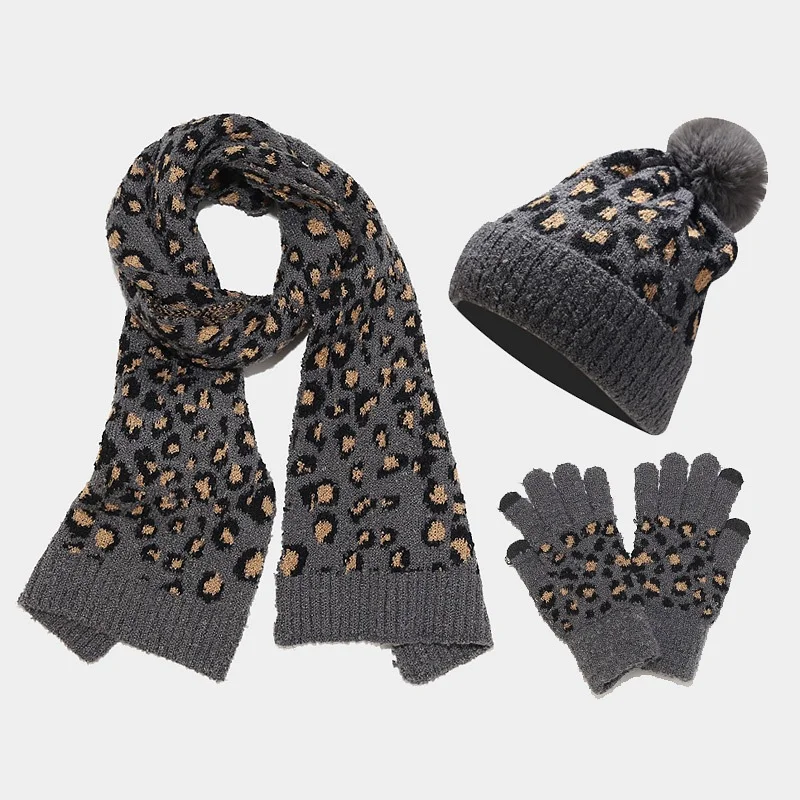 • Details: Knit Construction with Pom-Pom Accent on Hat, Matching Leopard Pattern Across All Pieces, Ribbed Edges for snug fit