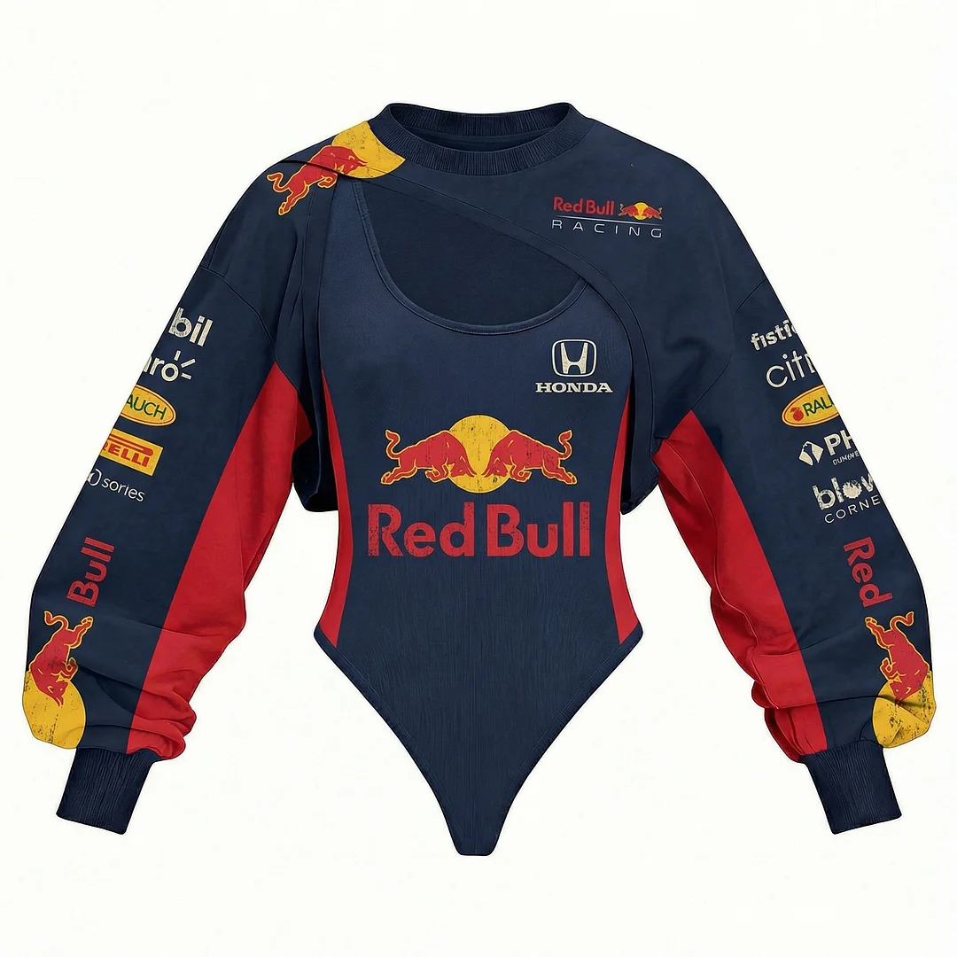 Women's Racing Team Logo Digitally Printed Tights Irregular Sweatshirt Set