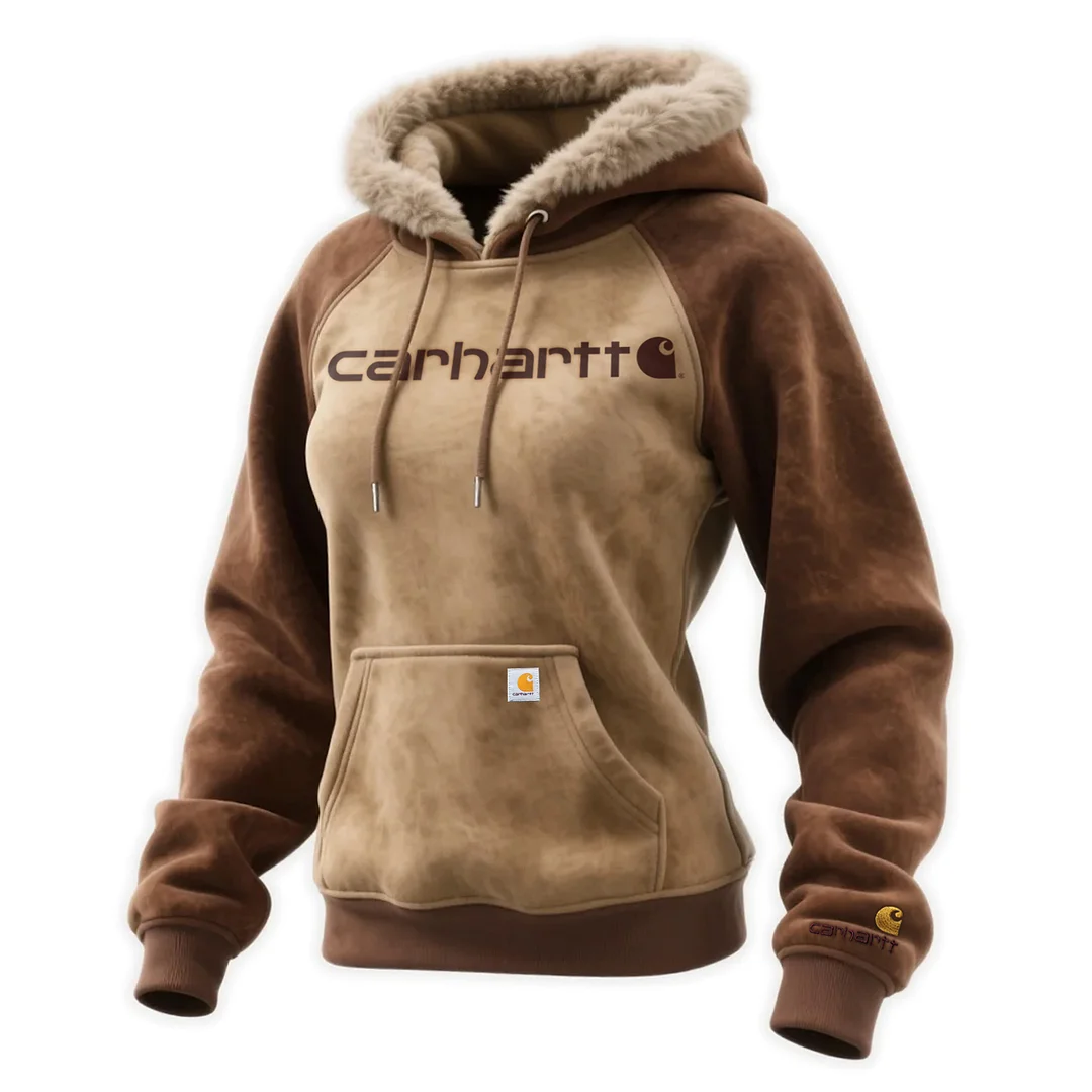 Women's Suede Contrast Hooded Sweatshirt