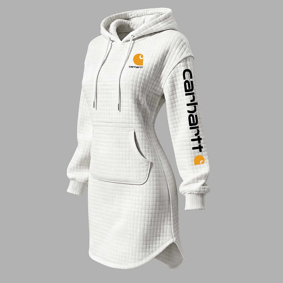 Women's Vintage White Waffle Quilted Plaid Hoodie Dress
